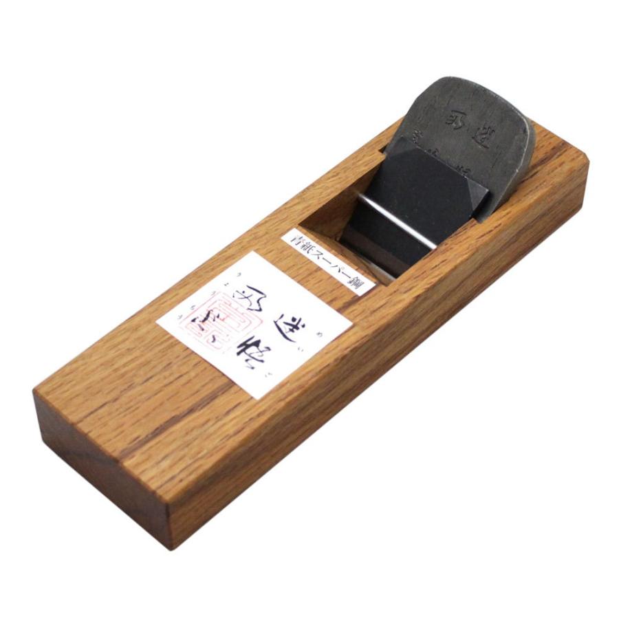 青紙スーパー 鉋-小鉋 青紙スーパー 55mm 造作用 白樫 8寸台 鐵の心 国産特殊鋼最高峰青紙スーパー鋼を使用。 耐久性、耐摩耗性に優れ、柔木から堅木まで鋭い切れ味で削れる万能タイプです。横山作 龍 寸8鉋 鋼 青紙スーパー 台 白樫 安来鋼の最高峰 柔木・堅木の万能向きの鉋 非常にデリケートな鋼で、温度管理が難しいため熟練の職人技が必要 さすが横山氏 どんな鋼でも切れ味抜群の鉋に
